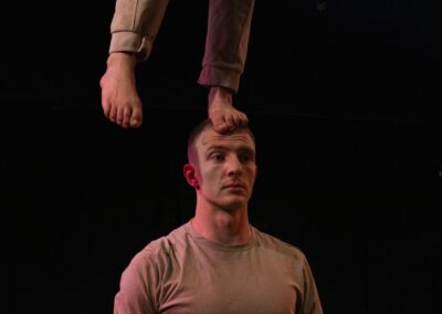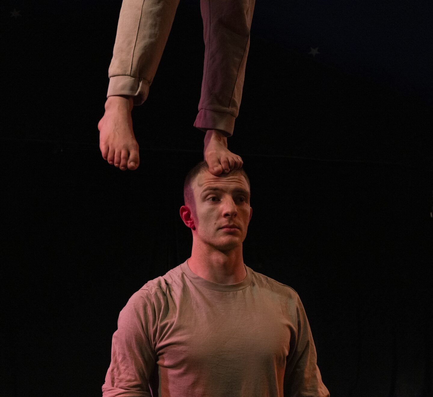 Die Bewegungssprache von Triority Circus verbindet akrobatische Präzision mit emotionaler Tiefe. Partnerakrobatik wird dabei zur körperlichen Metapher: Das Getragenwerden, das Ringen um Gleichgewicht, das plötzliche Fallen oder der Verlust von Kontrolle übersetzen innere Zustände in sichtbare, körperliche Bilder.