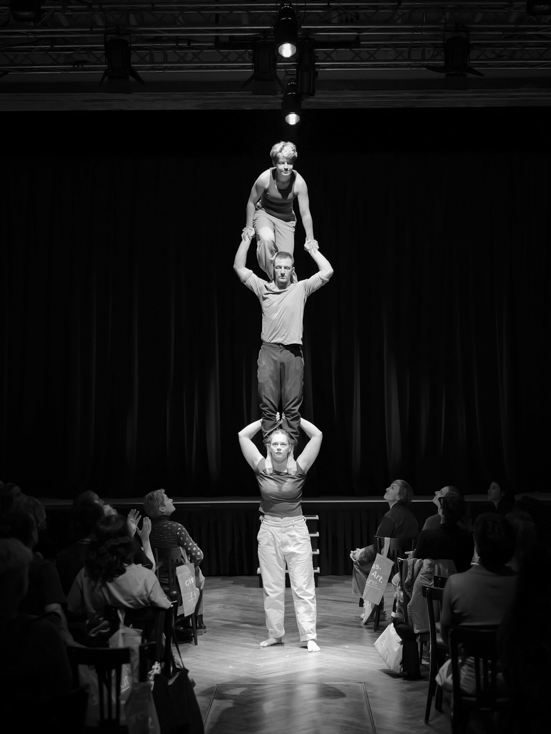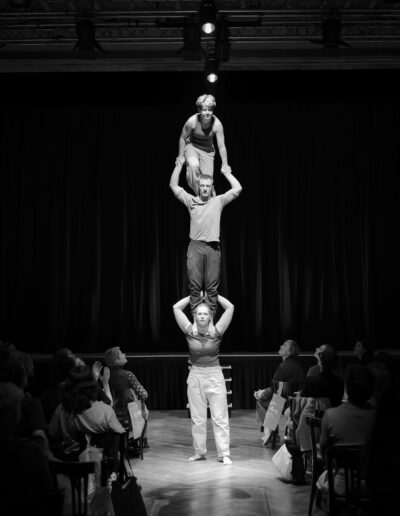 Triority Circus ist ein zeitgenössisches Circusensemble aus Berlin, bestehend aus Çiğdem Gerwert, Paula Dieken und Fryderyk Biehler. In ihrer Trioakrobatik erforschen sie neue Formen körperlicher Erzählweise und verschieben klassische Strukturen der Partnerakrobatik. Mit ihrer Rollenverteilung – Frau als Base, Mann als Middle, Frau als Flyerin – zeigen sie eine seltene Konstellation, die sich organisch aus ihren Körpern und Stärken entwickelt hat.